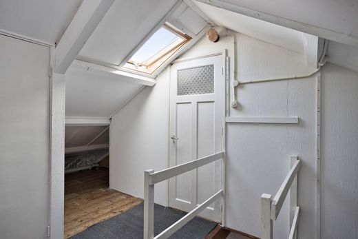 Achter de 5e deur op de overloop vind je de vaste trap naar de tweede verdieping met zolderruimte en de hobbykamer. Ook hangt hier de CV-ketel.