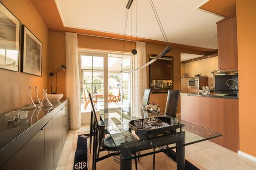 De ruime L-vormige kamer (39 m²) heeft veel daglicht en is vrij lang waardoor er ruimte is voor bijv. een extra zitje met uitzicht op de zijtuin. Tuindeuren geven toegang tot de grote serre (23 m²). Dit is een heerlijke ruimte met twee schuifdeuren (naar zij- en achtertuin), en met een open haard voor de wat killere dagen. De serre is ook toegankelijk via de bijkeuken.