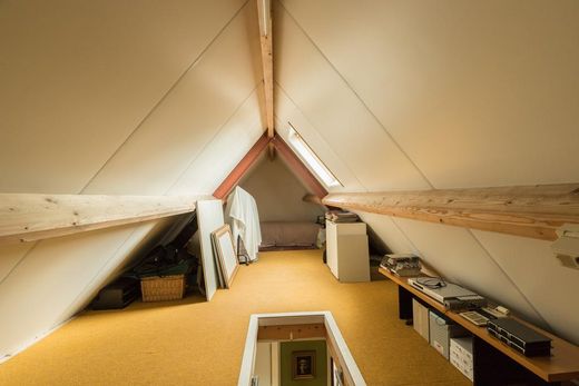 Boven zijn 3 ruime slaapkamers (resp. 11 en 16 m²) en een keurige badkamer (8 m²) met toilet, douchecabine, wastafel en ligbad. Een vlizotrap geeft toegang tot de lange bergzolder met dakraam.