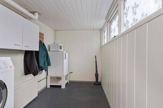 Via de keuken kom je in de bijkeuken met CV-ketel, wasmachine-aansluiting, extra bergruimte en een deur naar de serre. In de bijkeuken ligt een vinylvloer van een mooie kwaliteit.